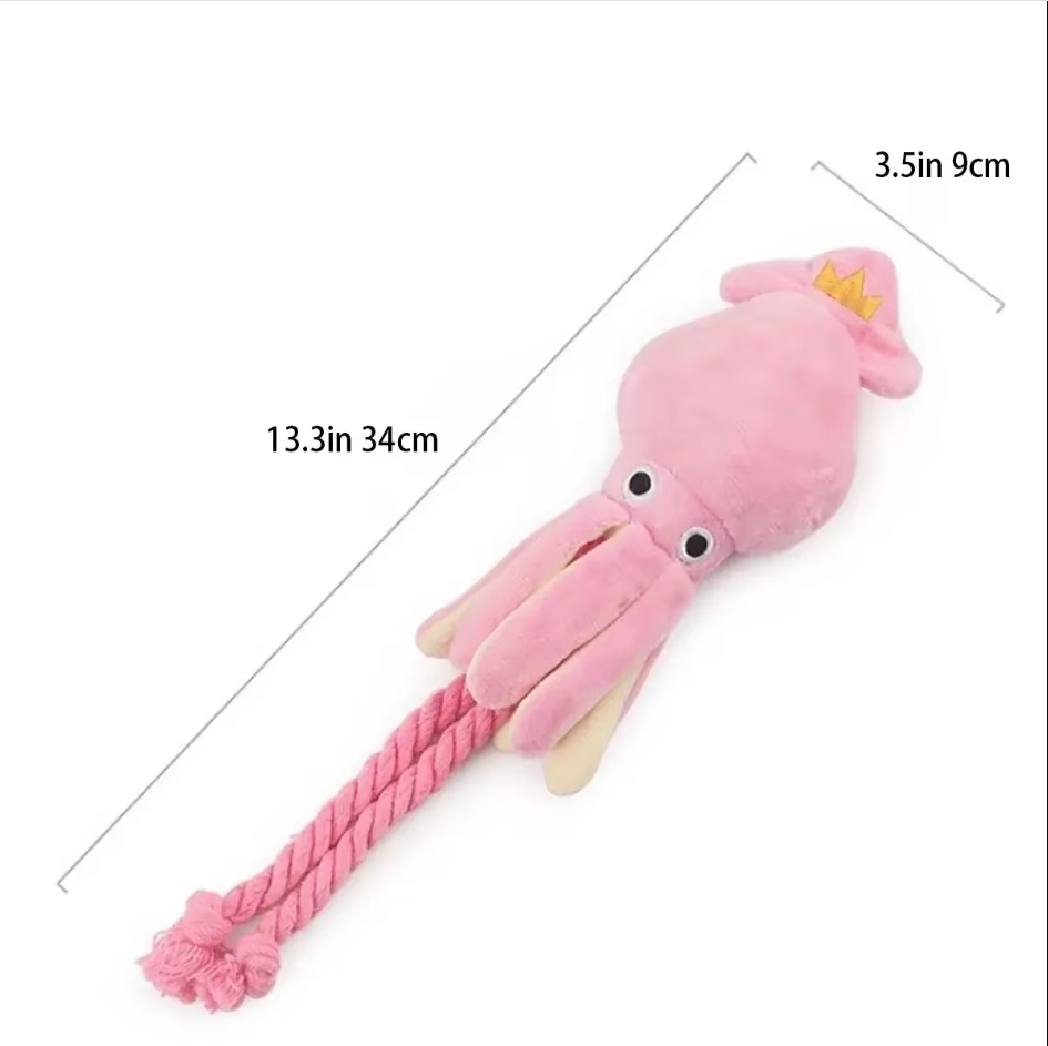 My dog loves this plush squid toy. It’s perfect for chewing and playing with during his daily exercise.